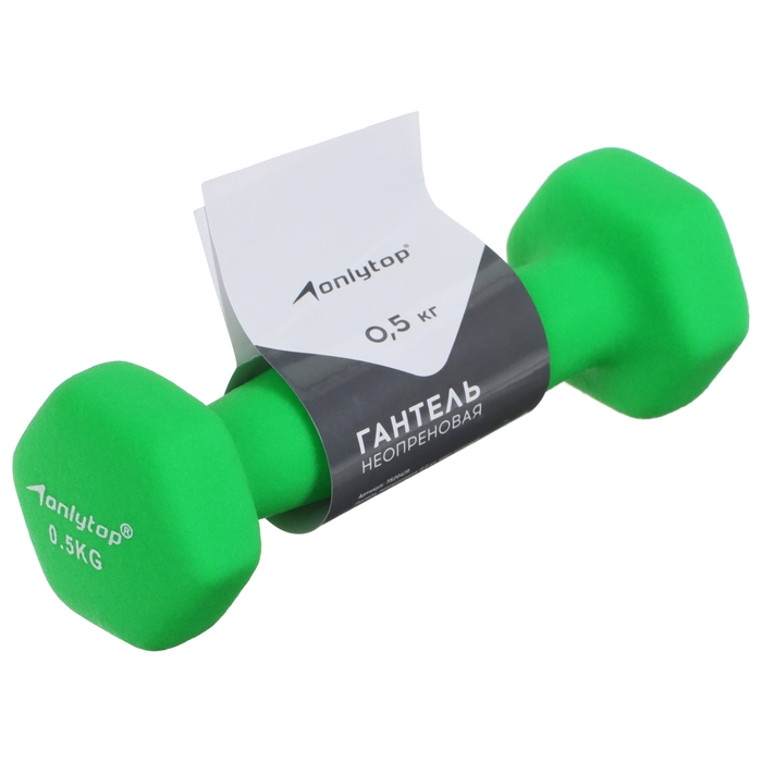 Гантель неопреновая ONLYTOP, 0,5 кг, цвет зелёный