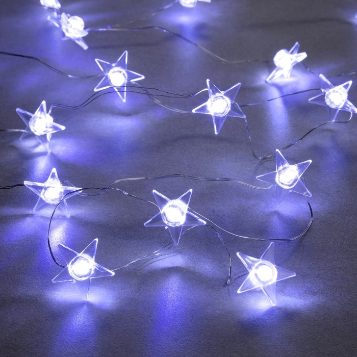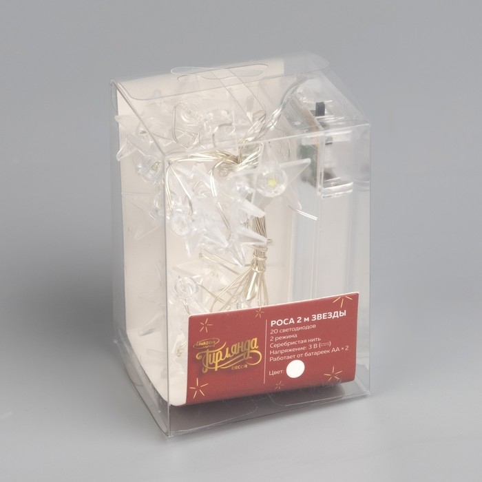 Гирлянда «Нить» 2 м роса с насадками «Звезда», IP20, серебристая нить, 20 LED, свечение белое, 2 режима, ААх2