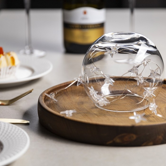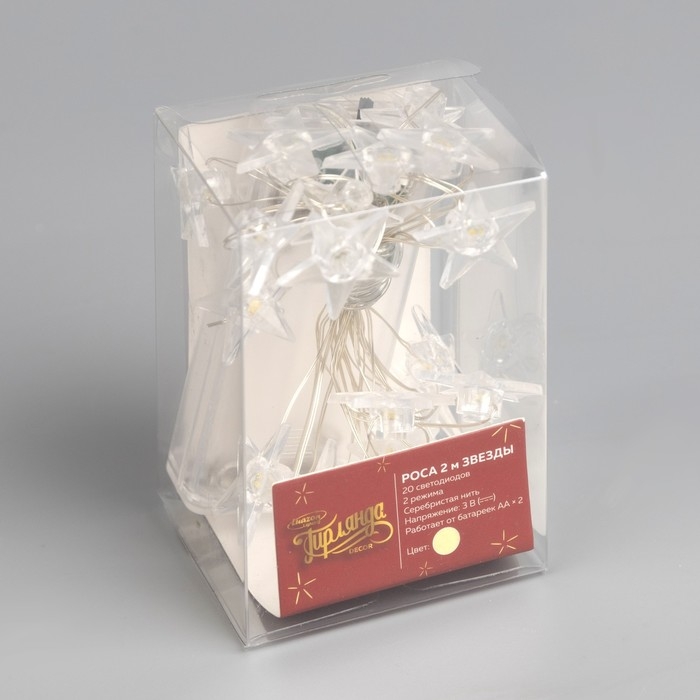 Гирлянда «Нить» 2 м роса с насадками «Звезда», IP20, серебристая нить, 20 LED, свечение тёплое белое, 2 режима, ААх2