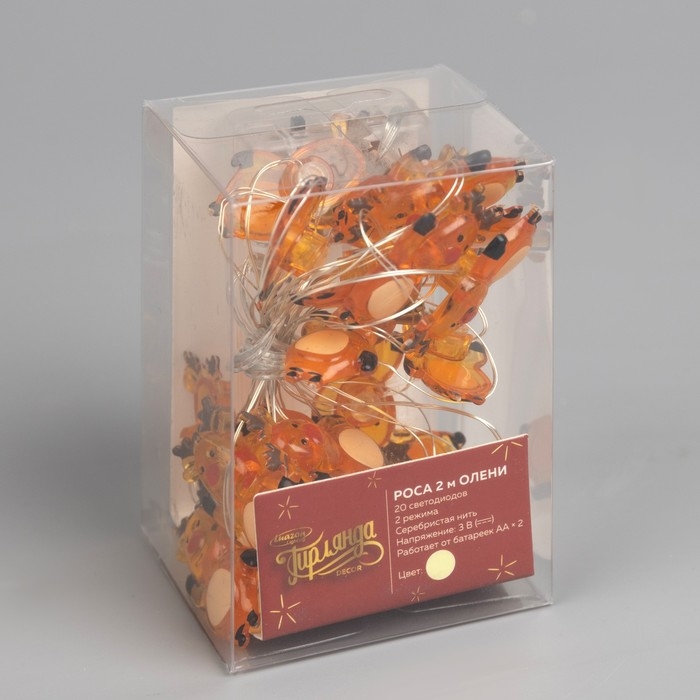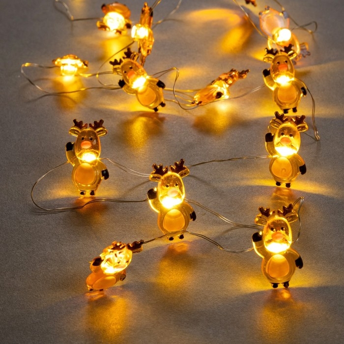 Гирлянда «Нить» 2 м роса с насадками «Олень», IP20, серебристая нить, 20 LED, 2 режима, батарейка ААх2 (нет в комплекте), свечение тёплое белое