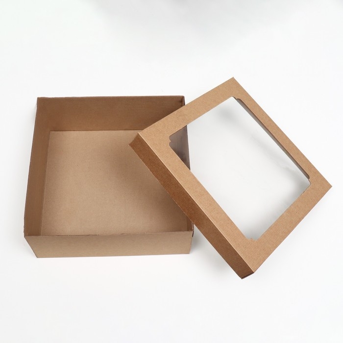 Коробка самосборная,с окном, бурая, 30 х 30 х 12 см