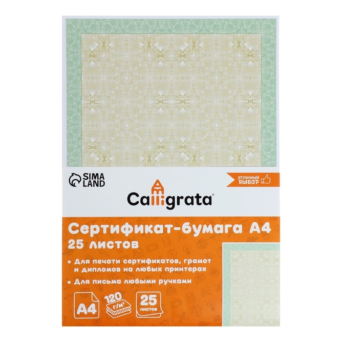Сертификат-бумага предназначена для изготовления сертификатов, грамот и дипломов на любых принтерах. Также подходит для письма масляными, капиллярными и шариковыми ручками.