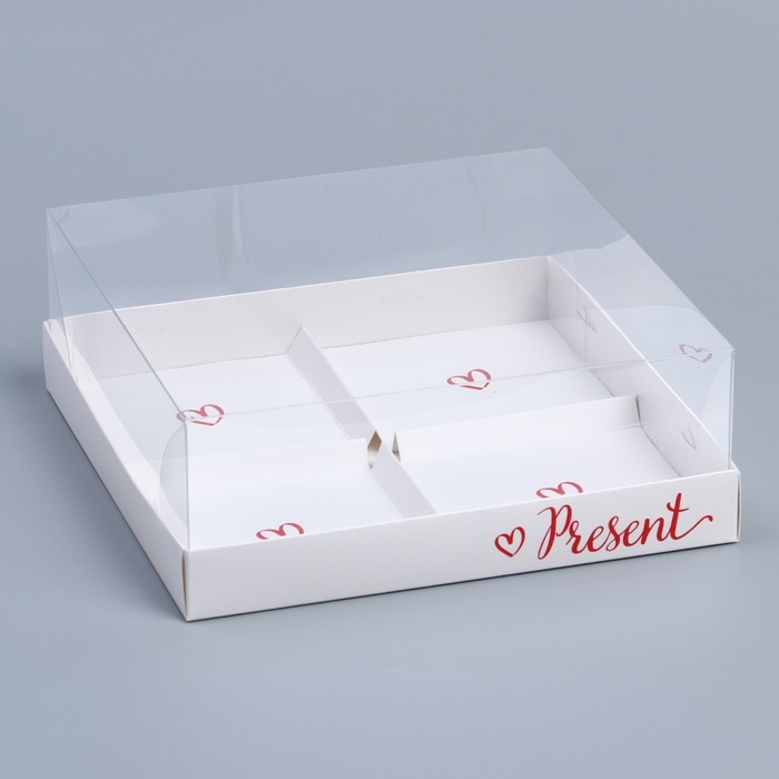 Коробка кондитерская для муссовых пирожных «Present», 17.8 х 17.8 х 6.5 см