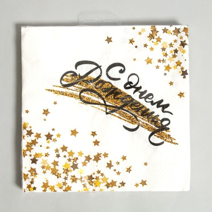 Салфетки бумажные «С днём рождения», (золотой звёздопад), 33 × 33 см, в наборе 12 штук
