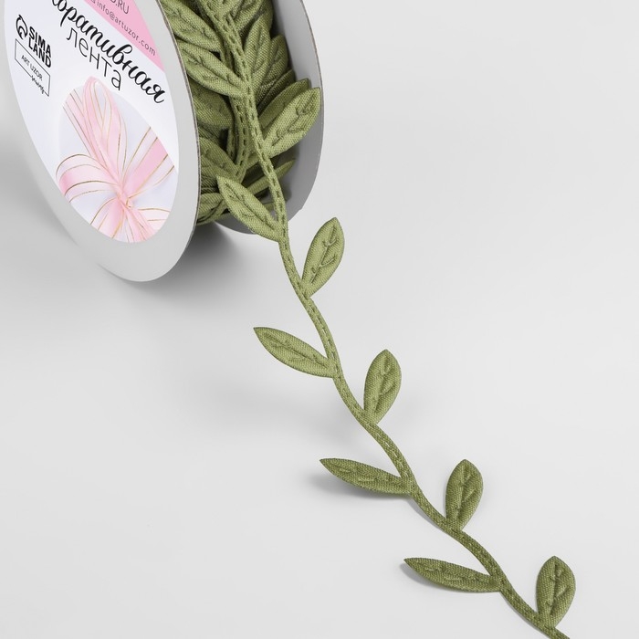 Лента фигурная «Листья», 25 мм, 9 ± 0,5 м, цвет зелёный