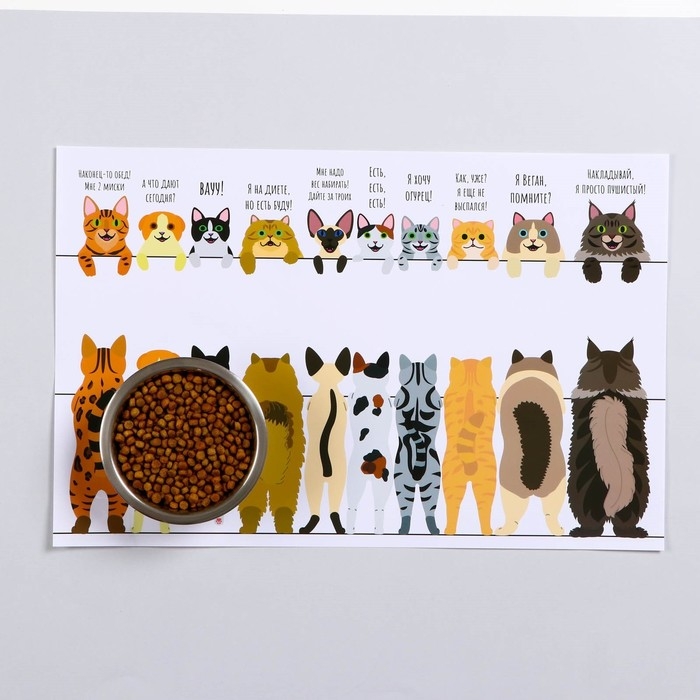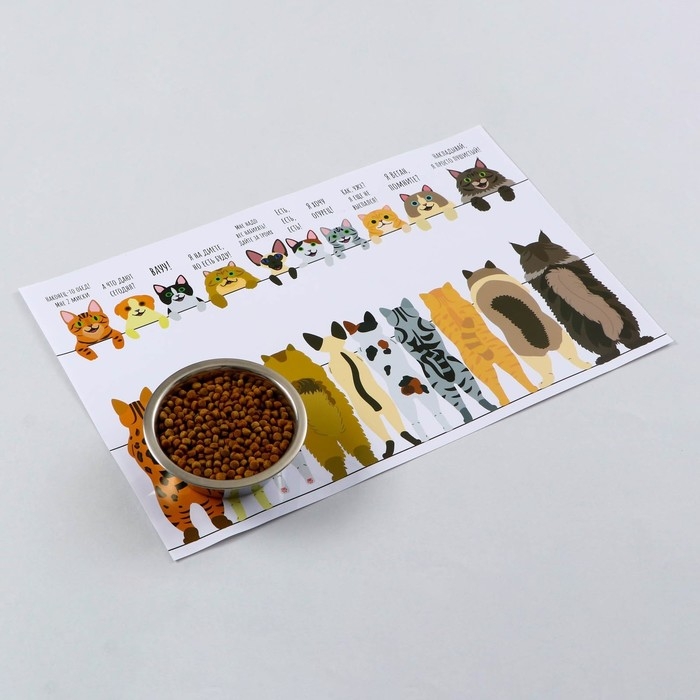 Коврик под миску "Пижон" 43 х 28 см "Котики в ожидании"