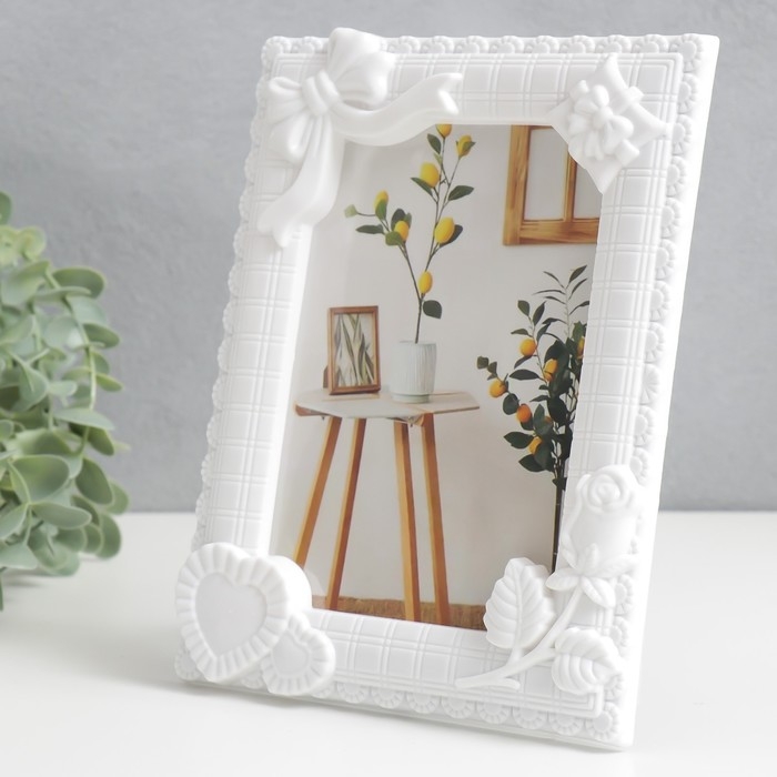 Фоторамка пластик 10х15 см "Романтика" белая 17х22 см