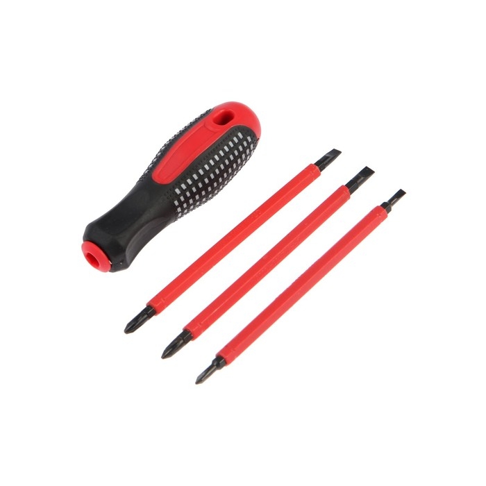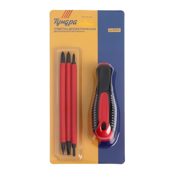 Отвертка диэлектрическая ТУНДРА, 2К рукоятка, двухсторонние биты 3 шт., до 1000 В