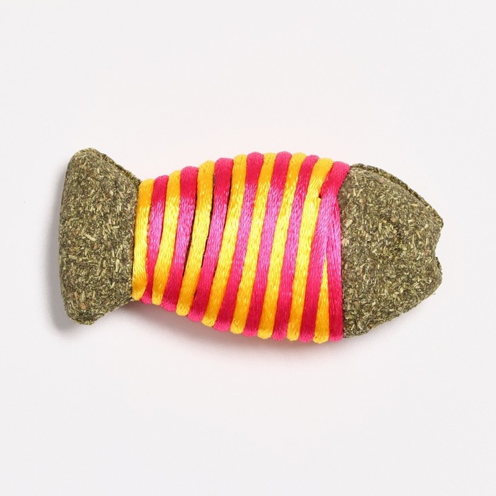 Игрушка для кошек из кошачьей мяты "Полосатая рыбка", 7 см, жёлтая/розовая