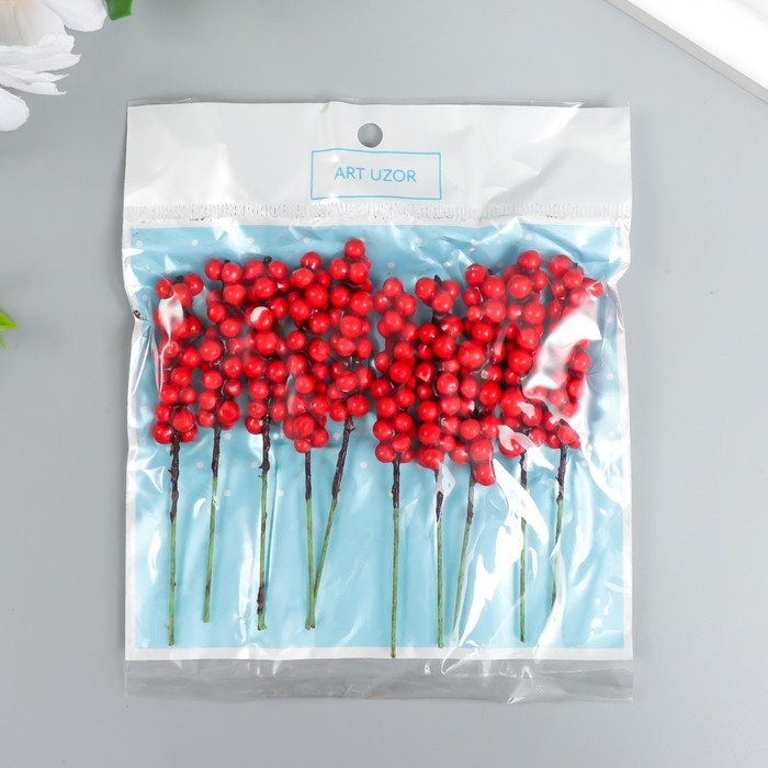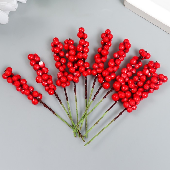 Декор для творчества "Веточка с ягодами" красный набор 10 шт 1х1х9 см