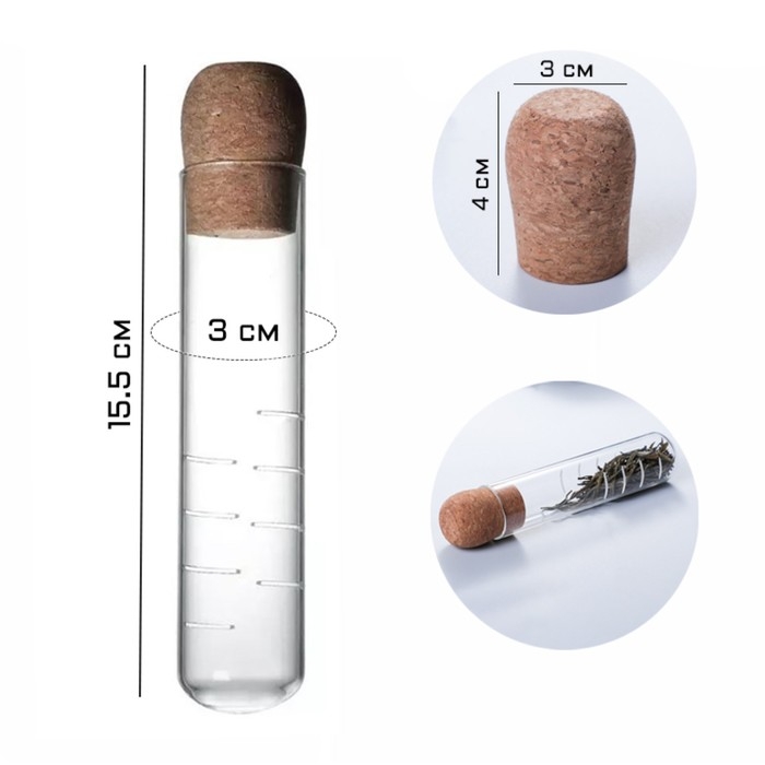 - Размер пробирки : высота 15.5 см, диаметр 3 см