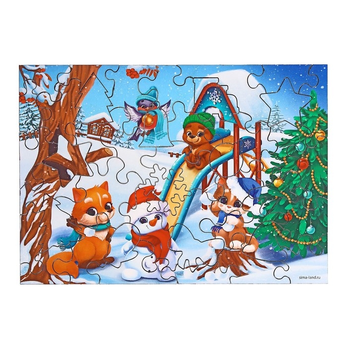 Деревянный пазл фигурный «Новый год! Новогодние забавы»