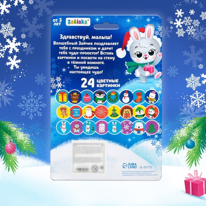 Проектор-фонарик «Новогодний проектор», 3 слайда, 24 картинки, МИКС