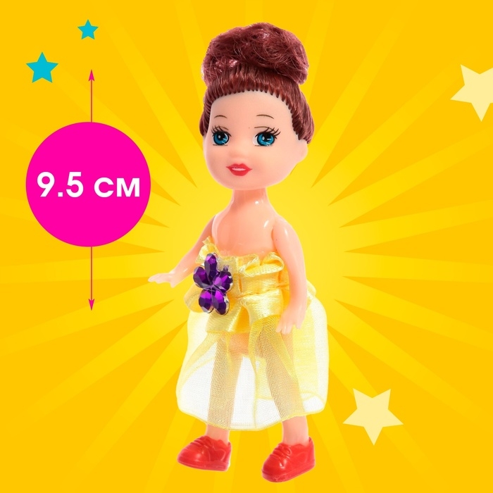 - Высота куклы — 9,5 см. Игрушка очень компактная, поэтому её удобно захватить с собой на прогулку, в гости и даже в путешествие.