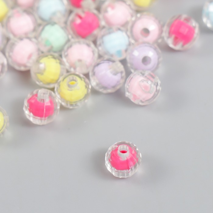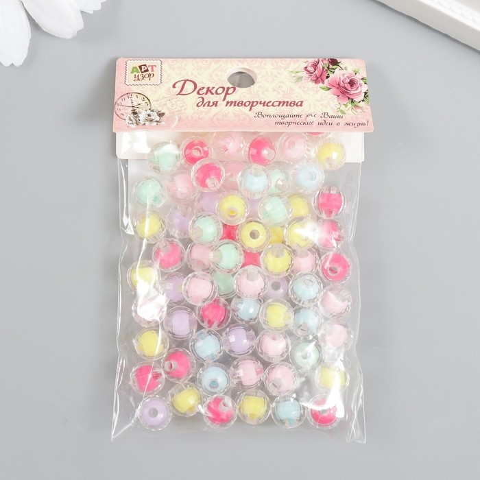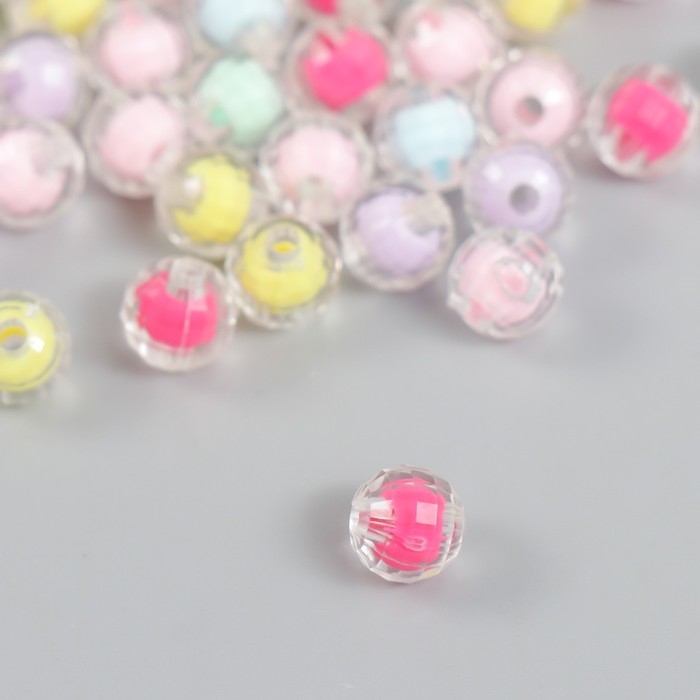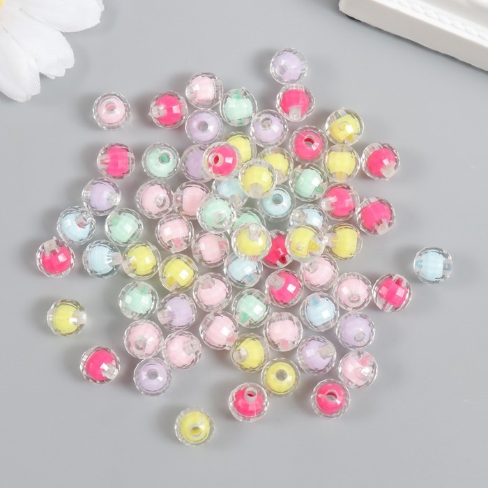 Бусины пластик "Шар с гранями - внутренний цвет ассорти" набор 20 гр d=0,8 см