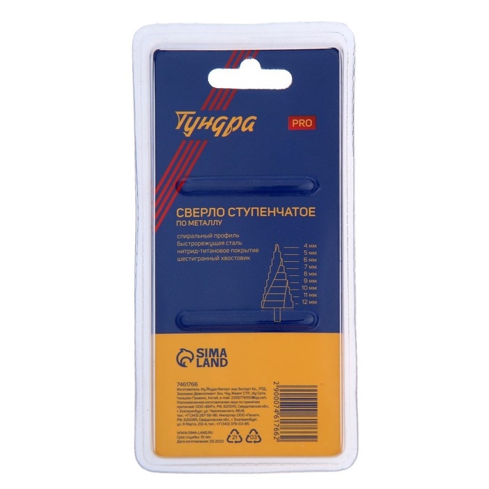Сверло ступенчатое ТУНДРА ВДОМ предназначено для сверления отверстий диаметром от 4 до 12 мм.