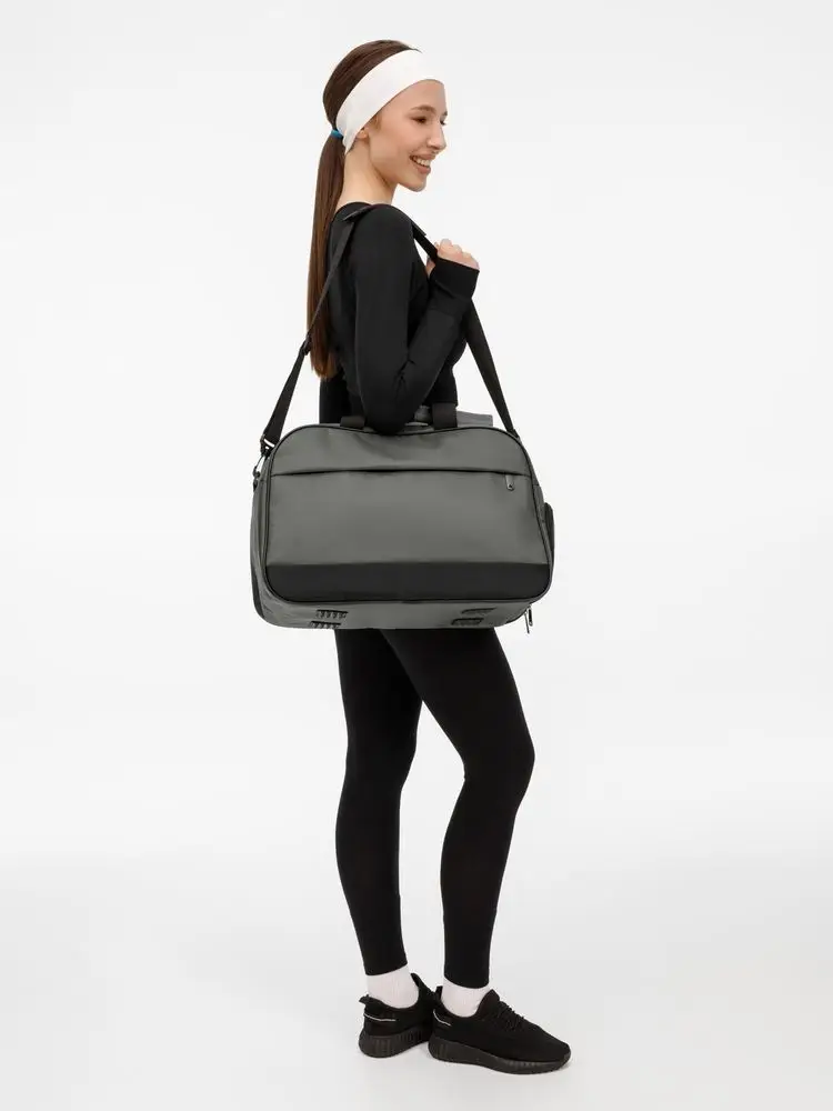 Усиленное дно с рифлеными ножками защищает сумку от износа, а боковое отделение с вентиляцией идеально подходит для обуви. Сумка оснащена удобными ручками и регулируемым плечевым ремнем, что обеспечит комфорт при переноске.