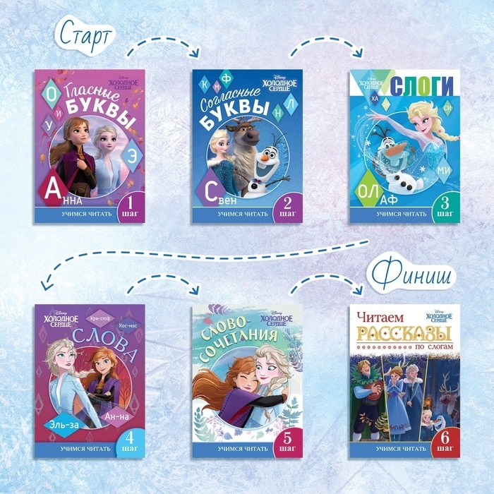 Набор обучающих книг «Учимся читать с Эльзой и Анной», 6 шт. по 24 стр., А5, Холодное сердце