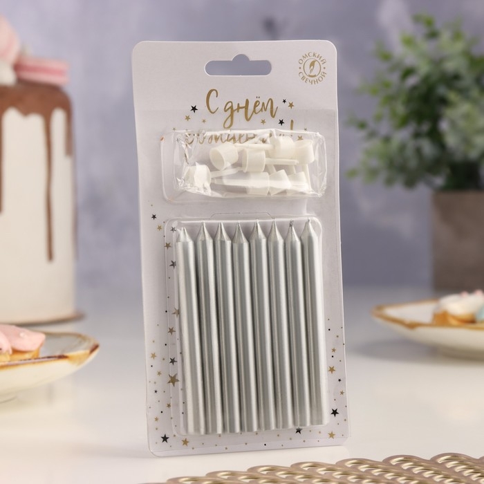 Набор свечей для торта "Манхеттен", 9 см, 8 шт, 24 мин, серебряный металлик