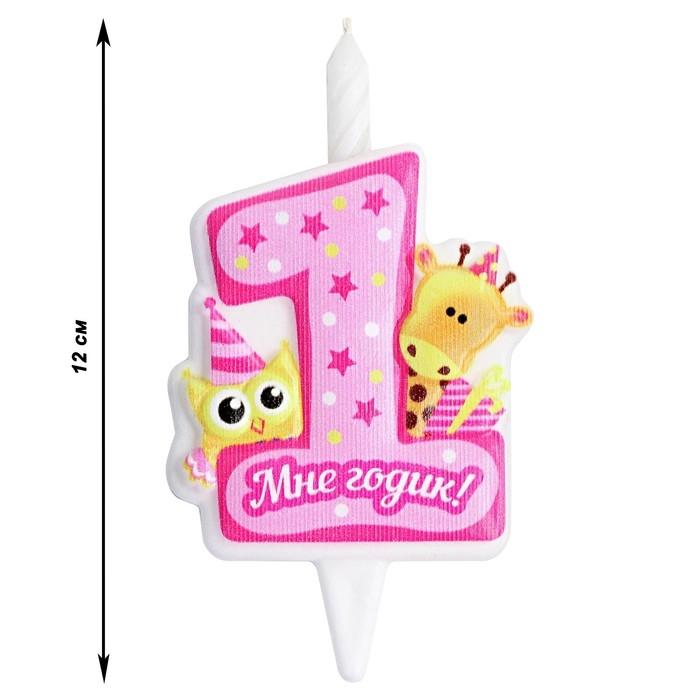 Свеча в торт "Мне годик!" с жирафом и совой, 9,7 см, 12 мин, 40 г