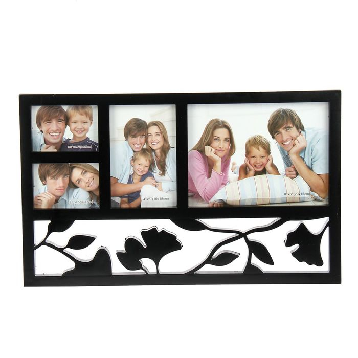 Фоторамка пластик на 4 фото 6,5x9, 10x15, 20x15 см "Листья" чёрная 43x26 см