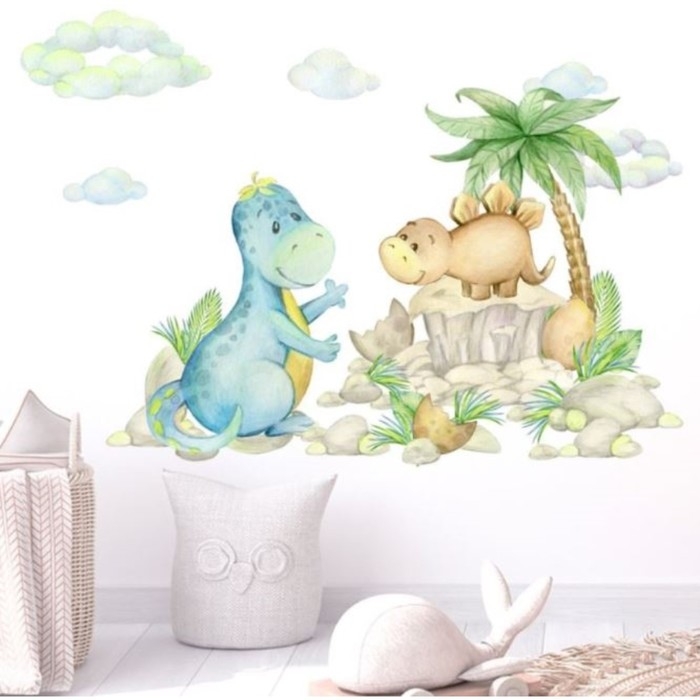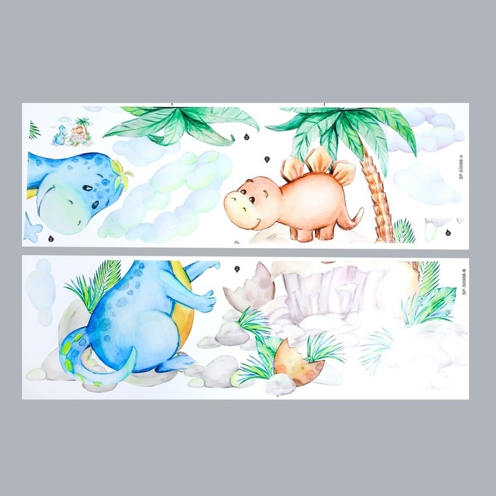 Наклейка пластик интерьерная цветная "Малыши динозаврики" набор 2 листа 30х90 см