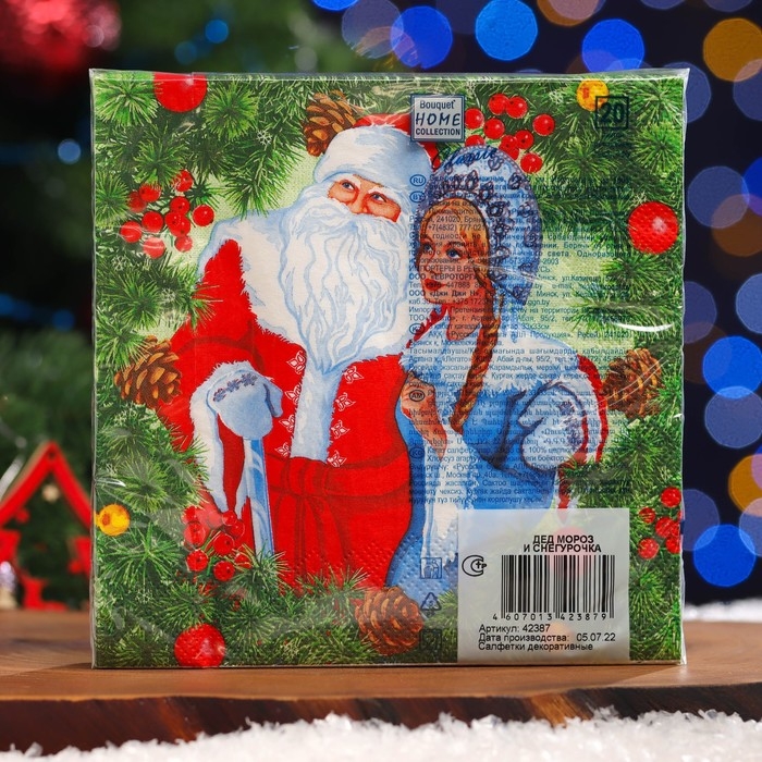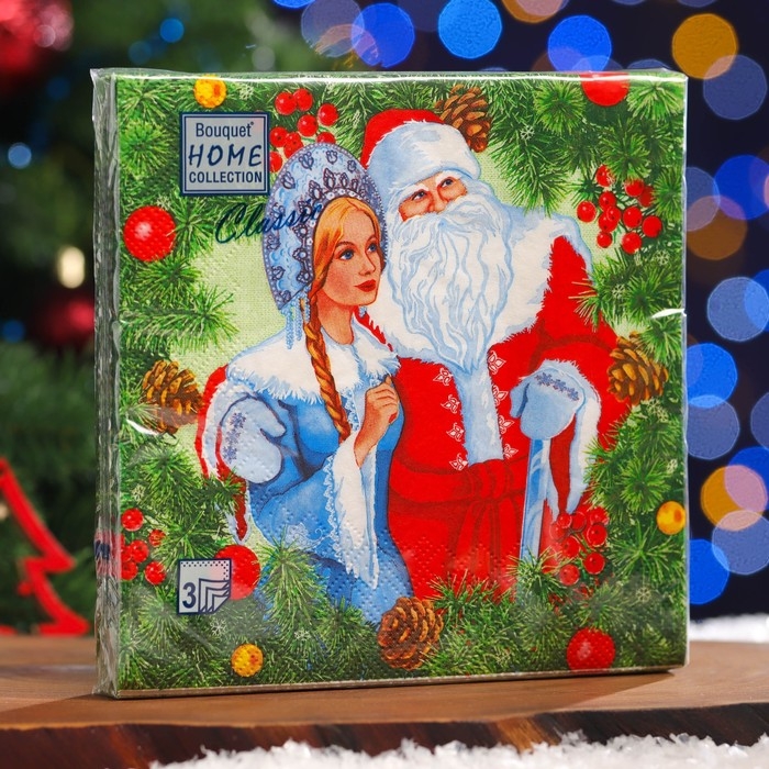 Новый год. Салфетки бумажные Home Classic "Дед Мороз и Снегурочка", 3 слоя, 20 листов