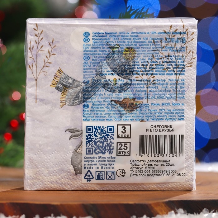 Новый год. Салфетки бумажные Art Bouquet "Снеговик и его друзья", 3 слоя, 24x24, 25 листов