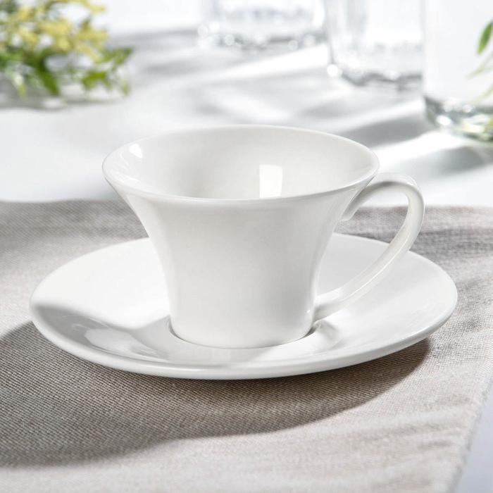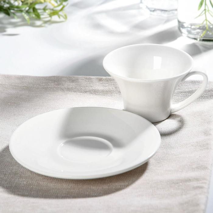 Чайная пара фарфоровая Доляна «Лаванда», 2 предмета: чашка 250 мл, блюдце d=15 см, цвет белый