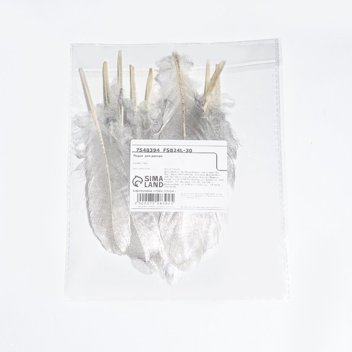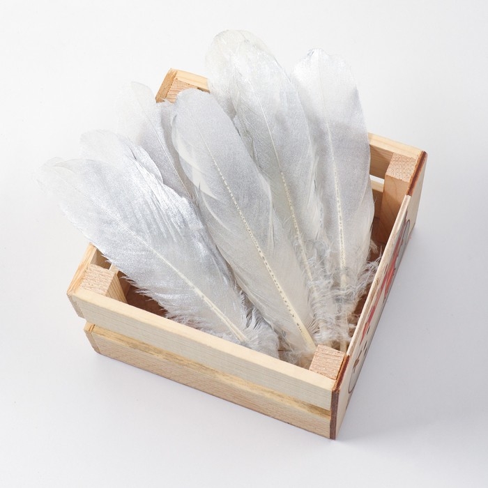 Перья для декора, серебро полная окраска , 13-15 см 10 шт
