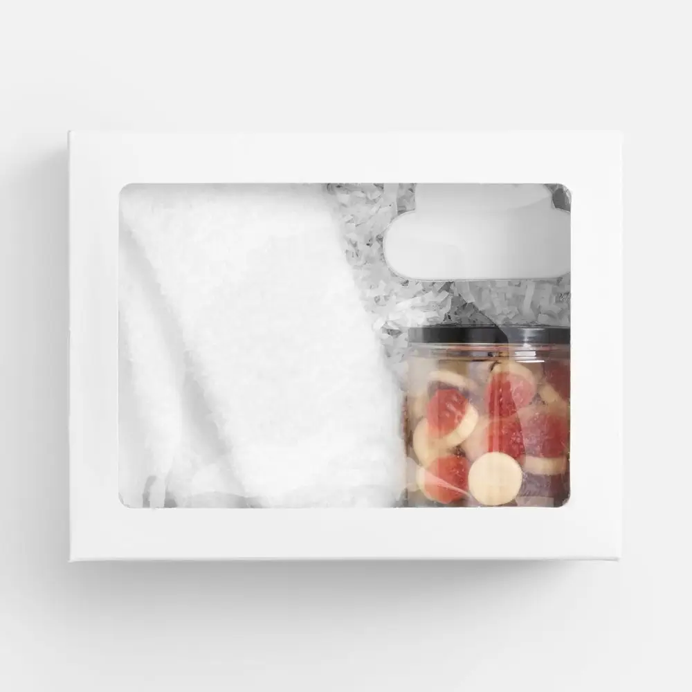 Белый-белый набор с мягкими пушистыми носками, нежным жевательным мармеладом со сливочно-ягодными нотками и антистрессом‑облаком подарит хорошее настроение, поможет замедлиться и снять стресс.