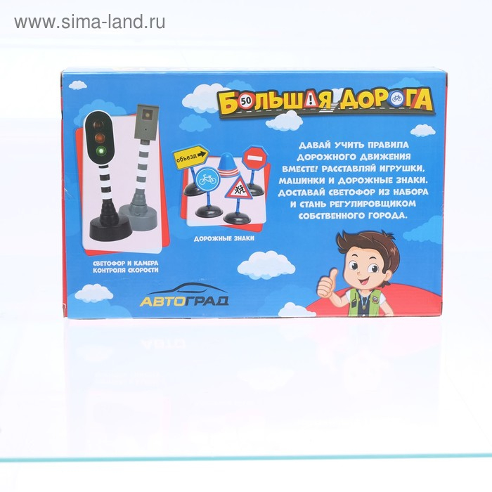С набором «Большая дорога» любая прогулка на улице станет для малыша безопаснее. Набор поможет ребёнку в игровой форме изучить правила дорожного движения и узнать, как вести себя на дороге. Камера в комплекте имеет звуковые и световые эффекты, воссоздаёт реальную ситуацию на дороге. Малыш сможет придумать варианты развития событий и заранее обезопасить себя.