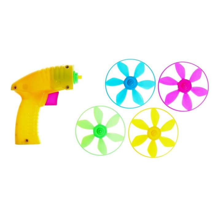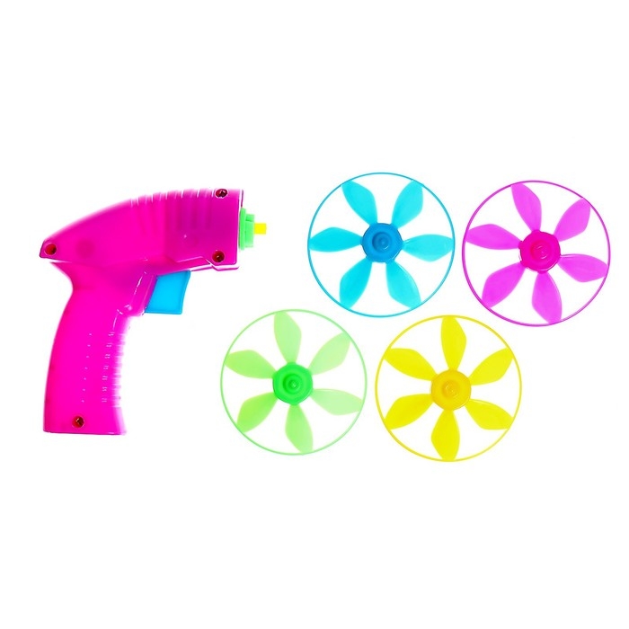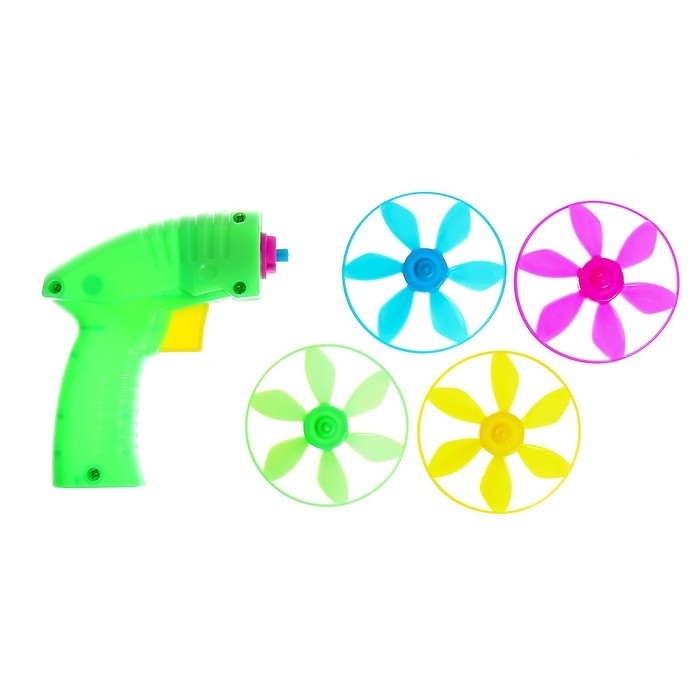 Вертушка «Запуск» — яркий и увлекательный набор для активных игр на свежем воздухе! В комплекте пистолет для запуска и 4 летающих диска.
