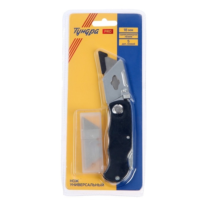Нож универсальный складной ТУНДРА ВДОМ, трапециевидное лезвие + 5 запасных, 18 мм