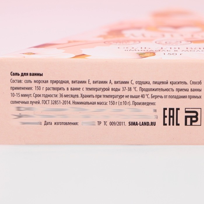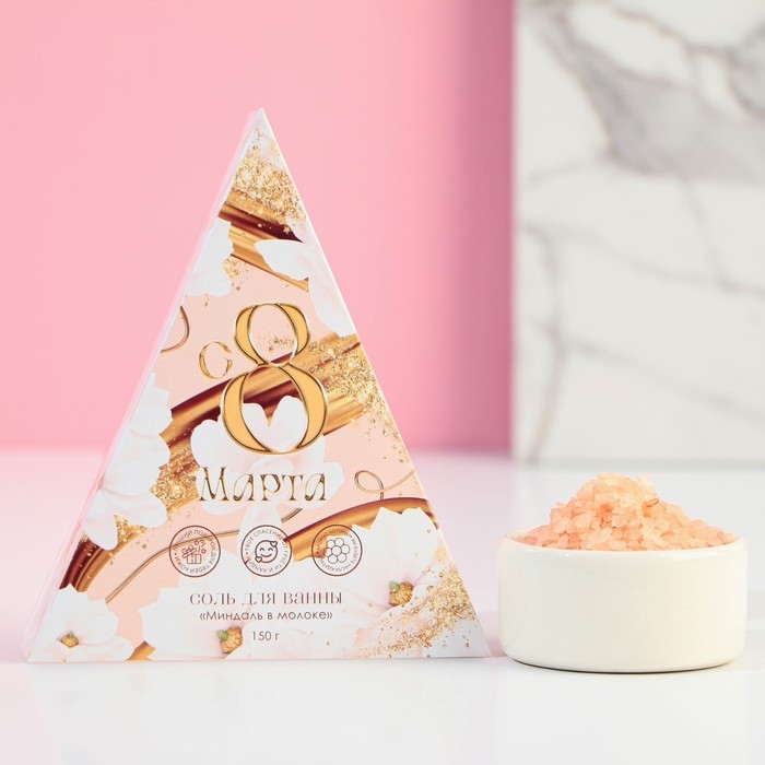 Соль для ванны «С 8 Марта!», 150 г, аромат миндаля в молоке, ЧИСТОЕ СЧАСТЬЕ