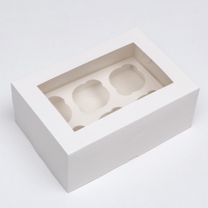 Коробка для 6 капкейков, белая 23,5 х 16 х 14 см