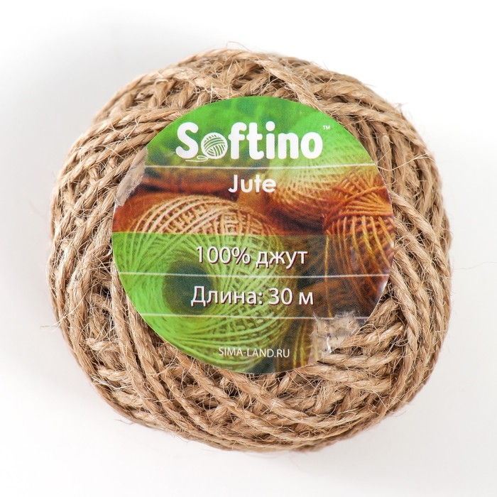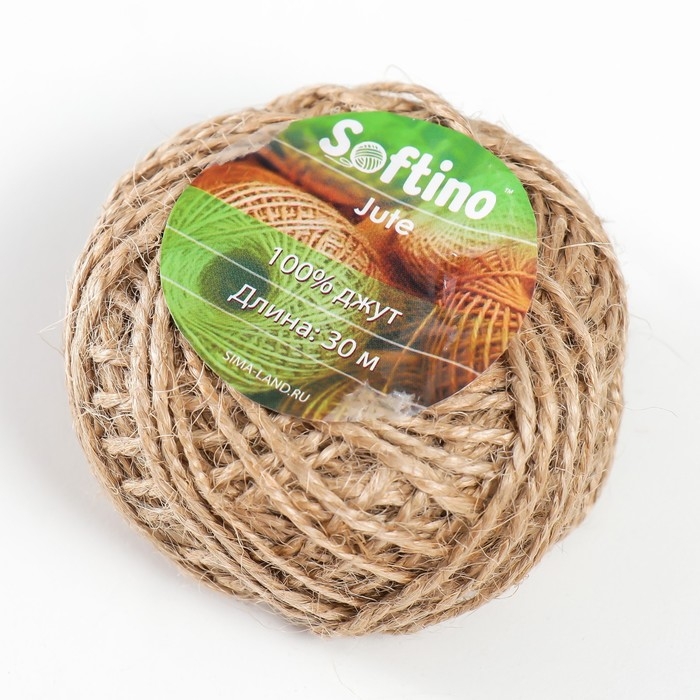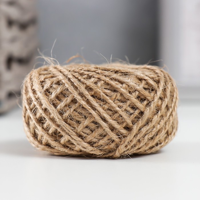 Пряжа 100% джут "Натуральный" 30 метров, толщина 0,15 см 6х6х4 см