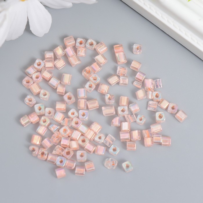 Бисер стекло 6/0 "Кубик. Полупрозрачный. Нежно-розовый" 10 гр