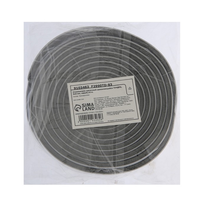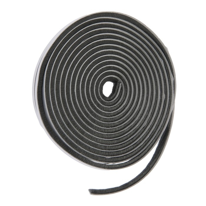 Уплотнитель щеточный самоклеящийся ТУНДРА, 9х5 мм, серый,10 м.