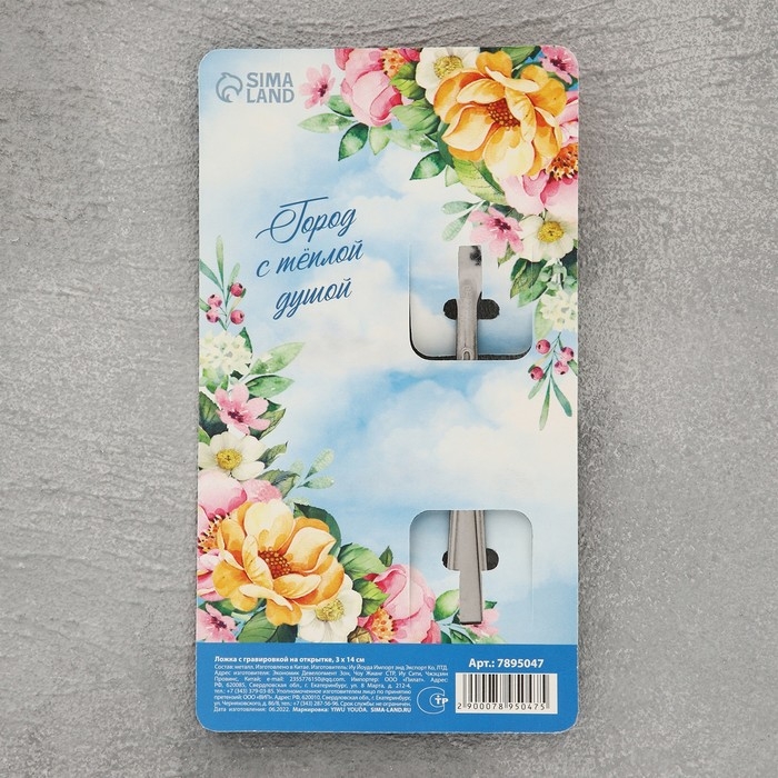 Сувенирная ложка изготовлена из металла, на которую нанесена поздравительная гравировка. Благодаря подарочной открытке с изображением любомого города, чайная ложка с гравировкой станет прекрасным сувениром для близких.