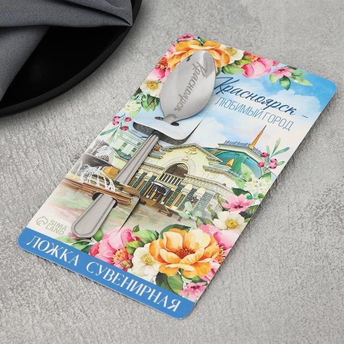 Ложка с гравировкой на открытке «Красноярск», 3 х 14 см