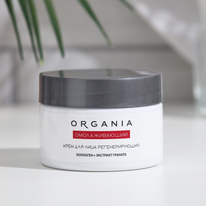 Крем для лица Organia омолаживающий стимулирует регенерацию клеток кожи, снабжает кожу питательными и увлажнительными элементами, повышает тонус и эластичность, замедляет процессы старения, разглаживает морщины и сглаживает мимические линии. Экстракт граната обладает ярко выраженным лифтинг-действием, стимулирует процесс регенерации и синтез собственного коллагена. Морошка, благодаря наличию антиоксидантов и органических кислот, предотвращает преждевременное старение кожи, возвращая ей тонус и упругость. В экстракте корня женьшеня содержатся важнейшие микроэлементы и минералы, антиоксиданты, фолиевая и никотиновая кислоты, необходимые для питания кожи.