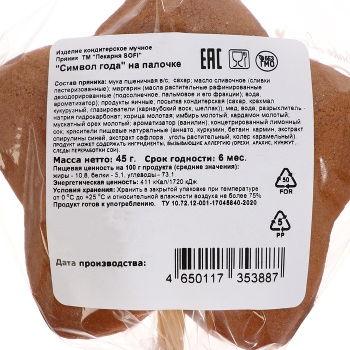 Новый год. Пряник на палочке "Символ года", 45 г