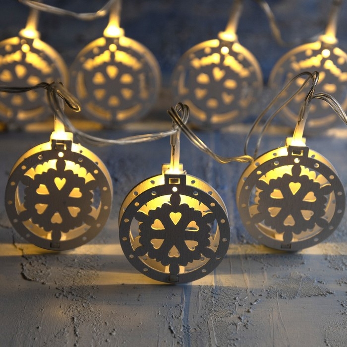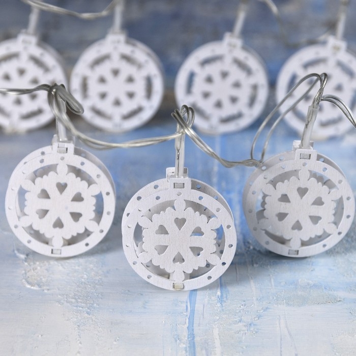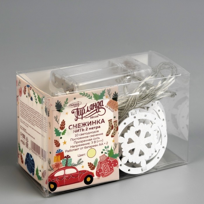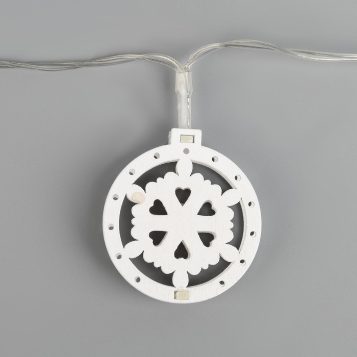 Гирлянда «Нить» 2 м с насадками «Снежинка», IP20, прозрачная нить, 10 LED, батарейки AAх2 (нет в комплекте), свечение тёплое белое