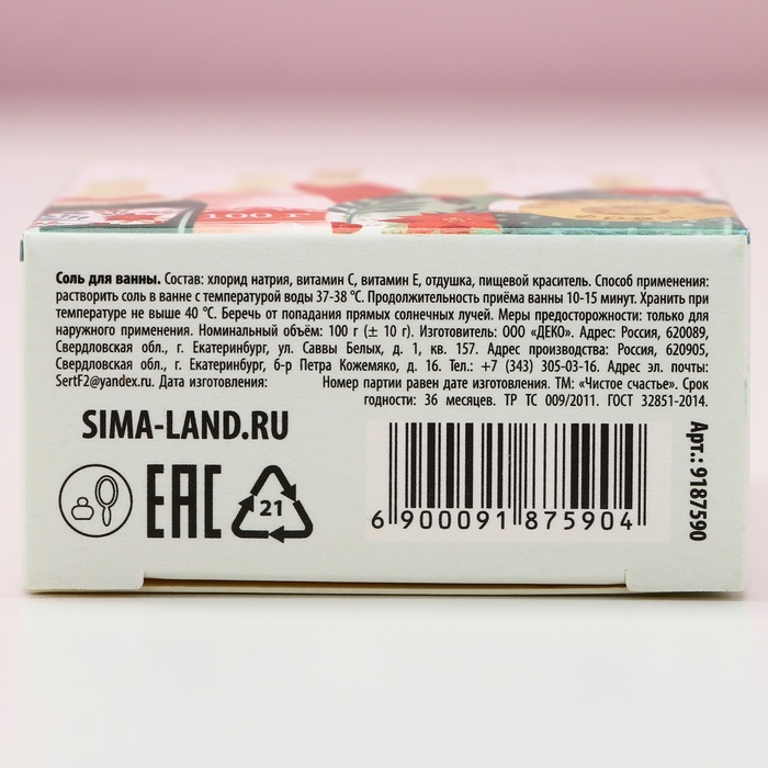 Новогодняя соль для ванны «Время чудес»,100 г, аромат яблока, Новый Год