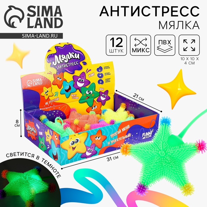 Антистресс сквиш мялка «Звёзды», цвета МИКС, в шоубоксе
