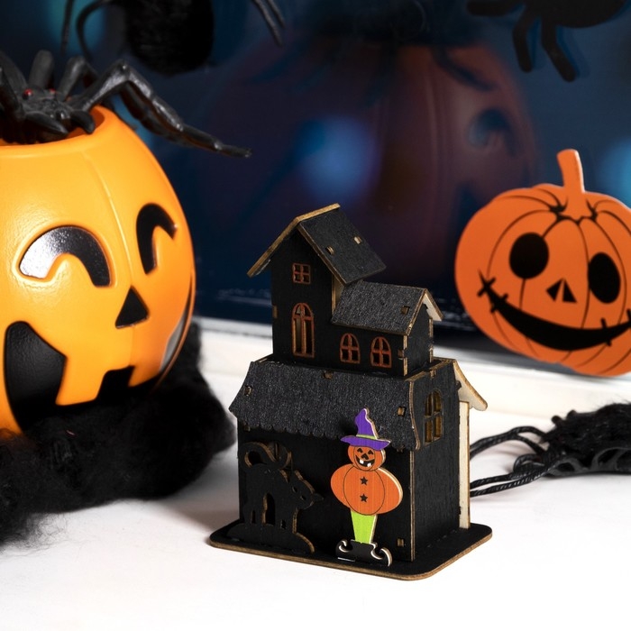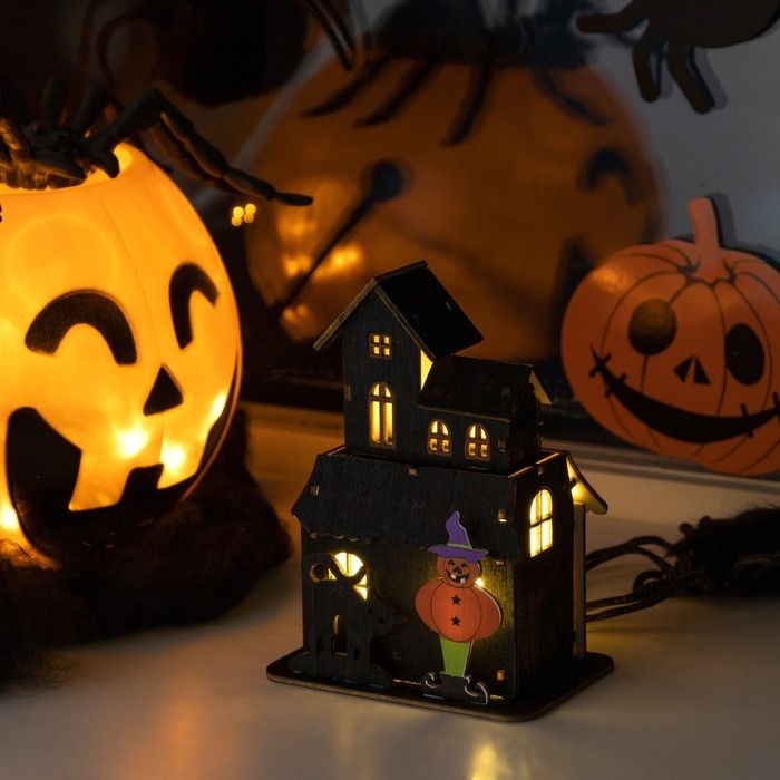 Светодиодная подвеска «Дом с чёрной кошкой» 9 × 12 × 6 см, пластик, батарейки LR1130х3 (в комплекте), свечение тёплое белое