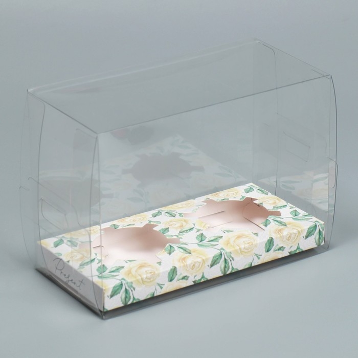 Коробка для капкейка, кондитерская упаковка, 2 ячейки «Розы», 16 х 8 х 11.5 см