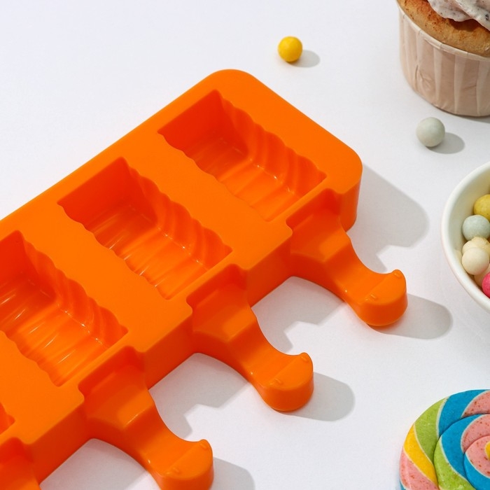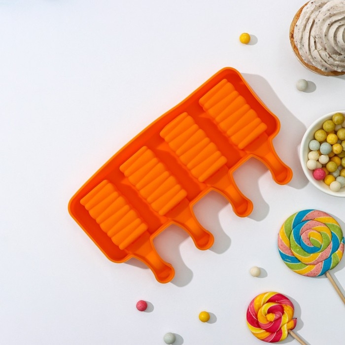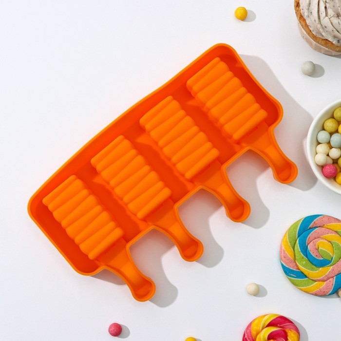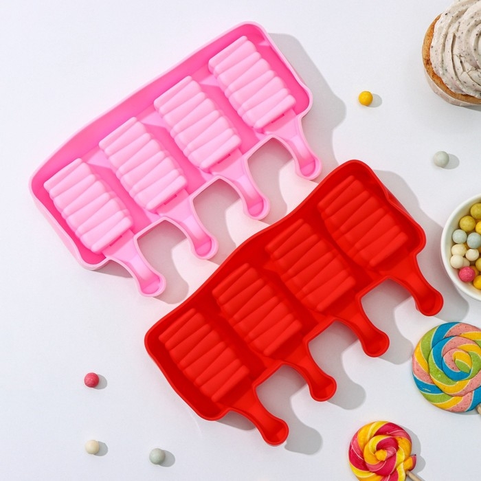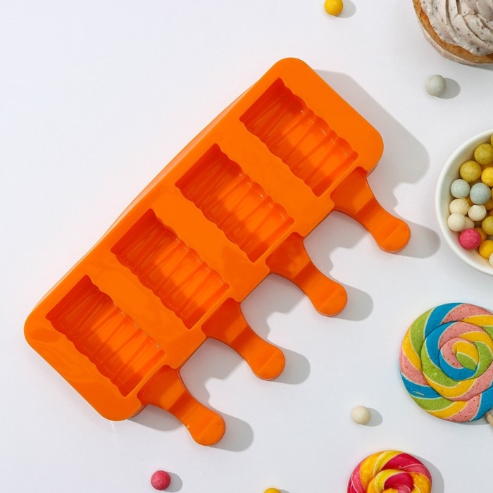 Форма для мороженого «Венеция», силикон, 19,3×11×2,4 см, 4 ячейки (5,5×2,9 см), цвет МИКС