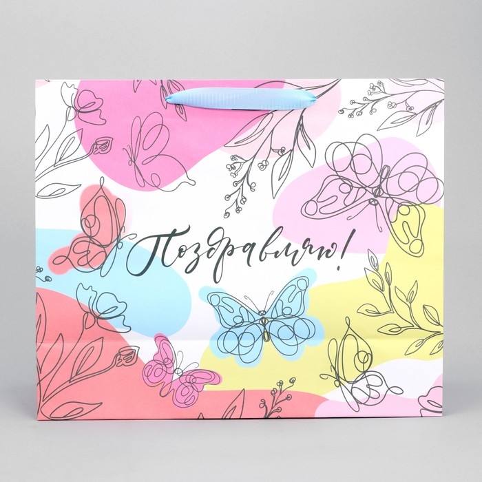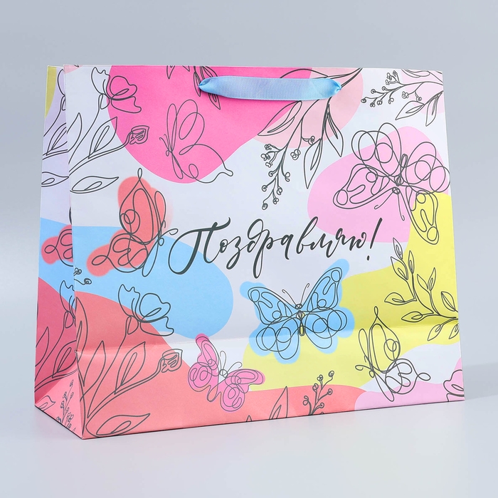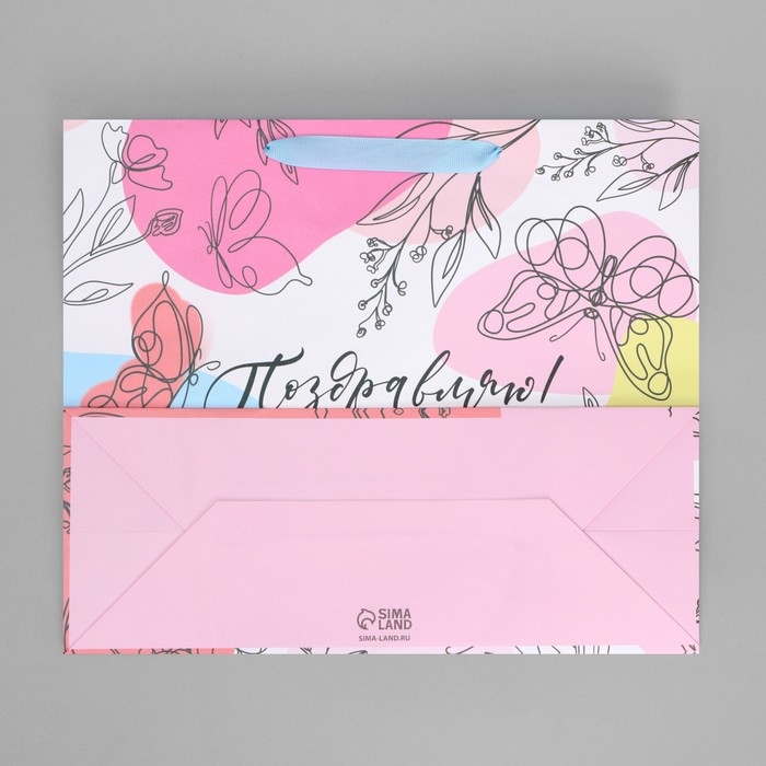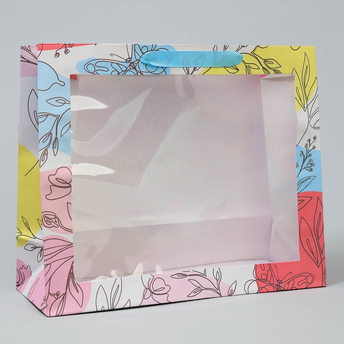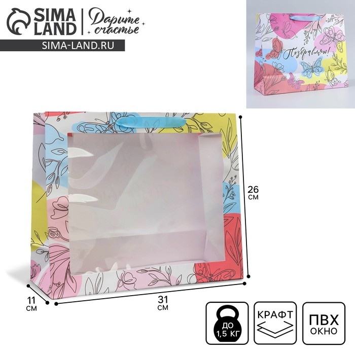 Пакет подарочный крафтовый с пластиковым окном, упаковка, «Поздравляю», 31 х 26 х 10 см